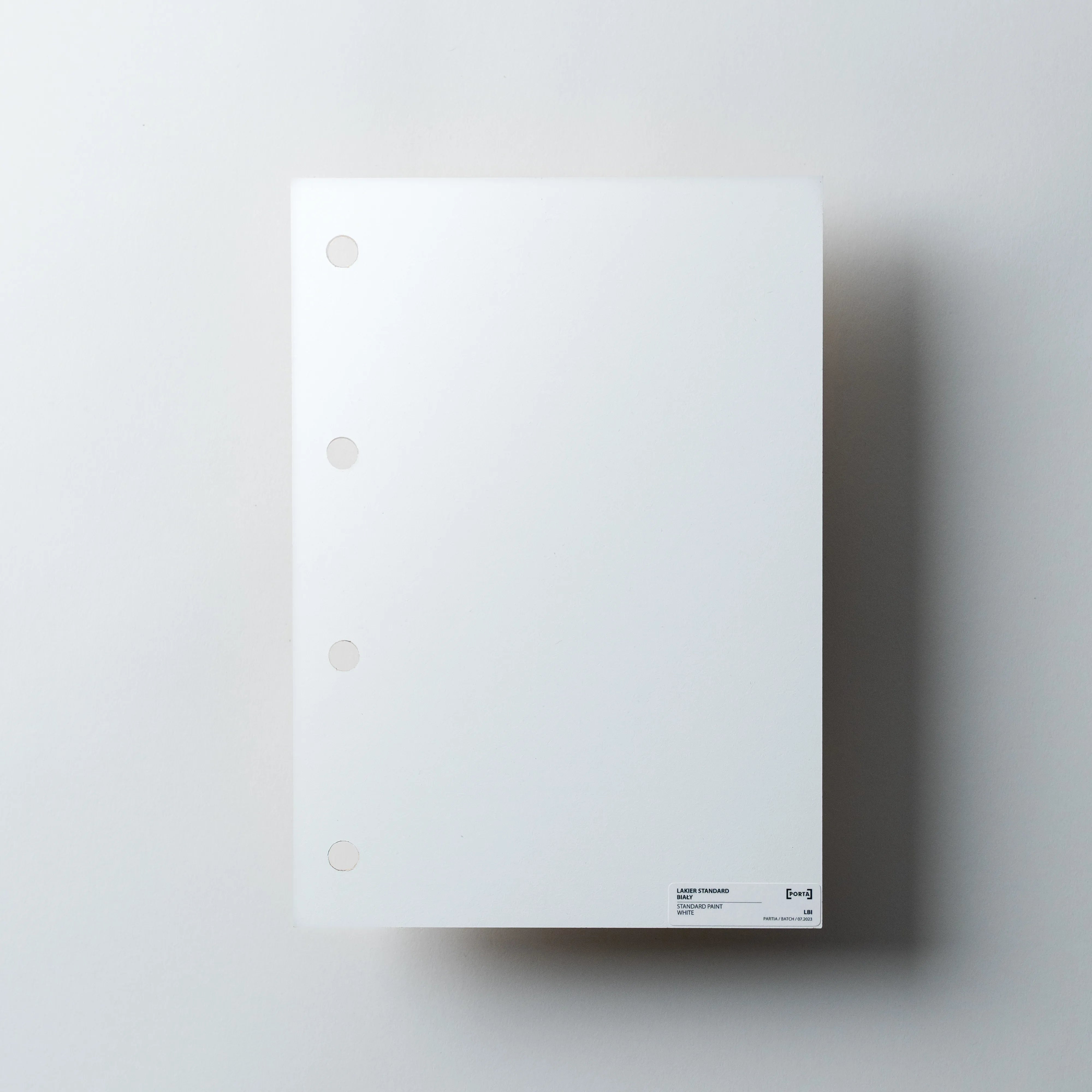 Próbka Lakieru Standard w kolorze: Biały, w formacie A4.