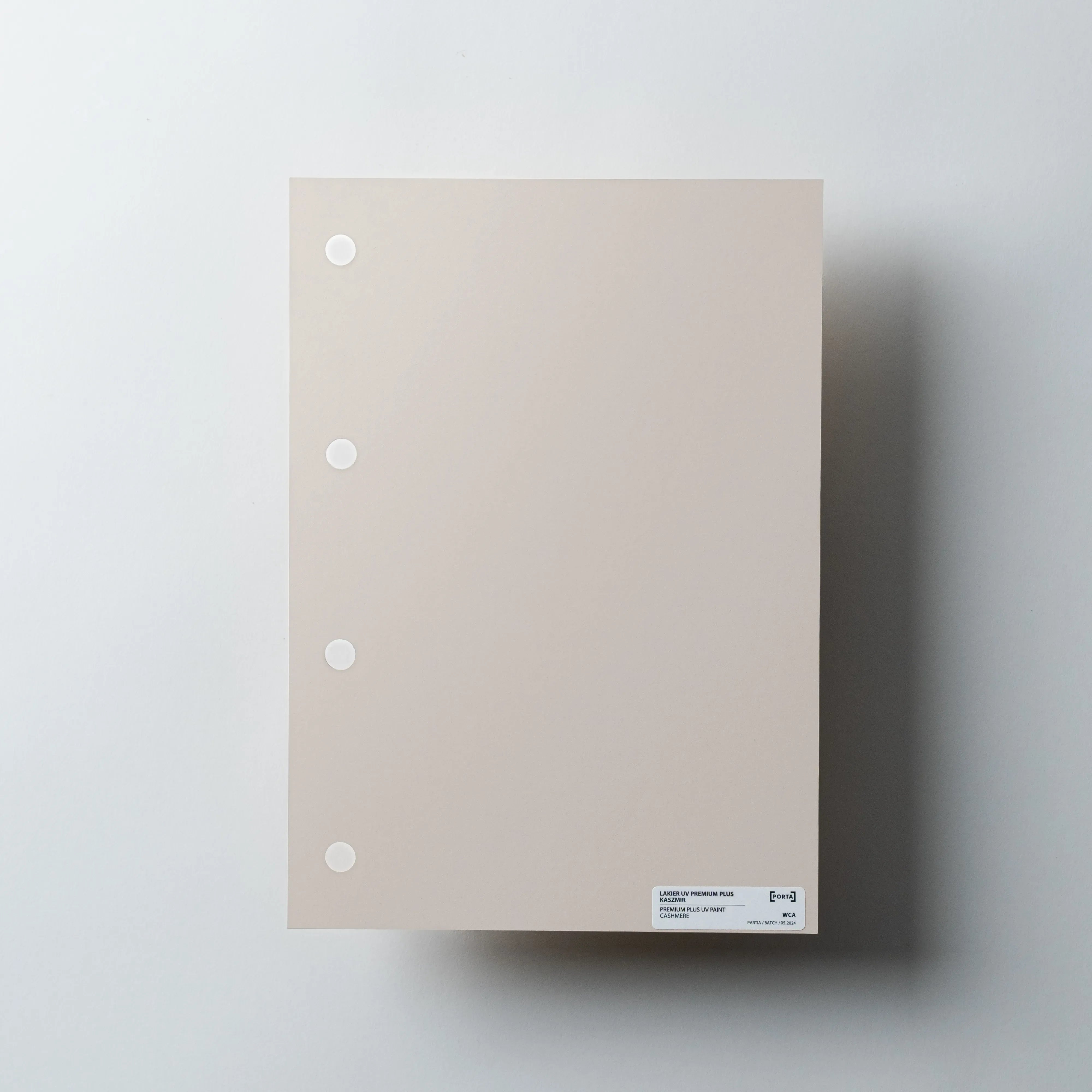 Próbka Lakier UV Premium Plus w kolorze: Kaszmir, w formacie A4.