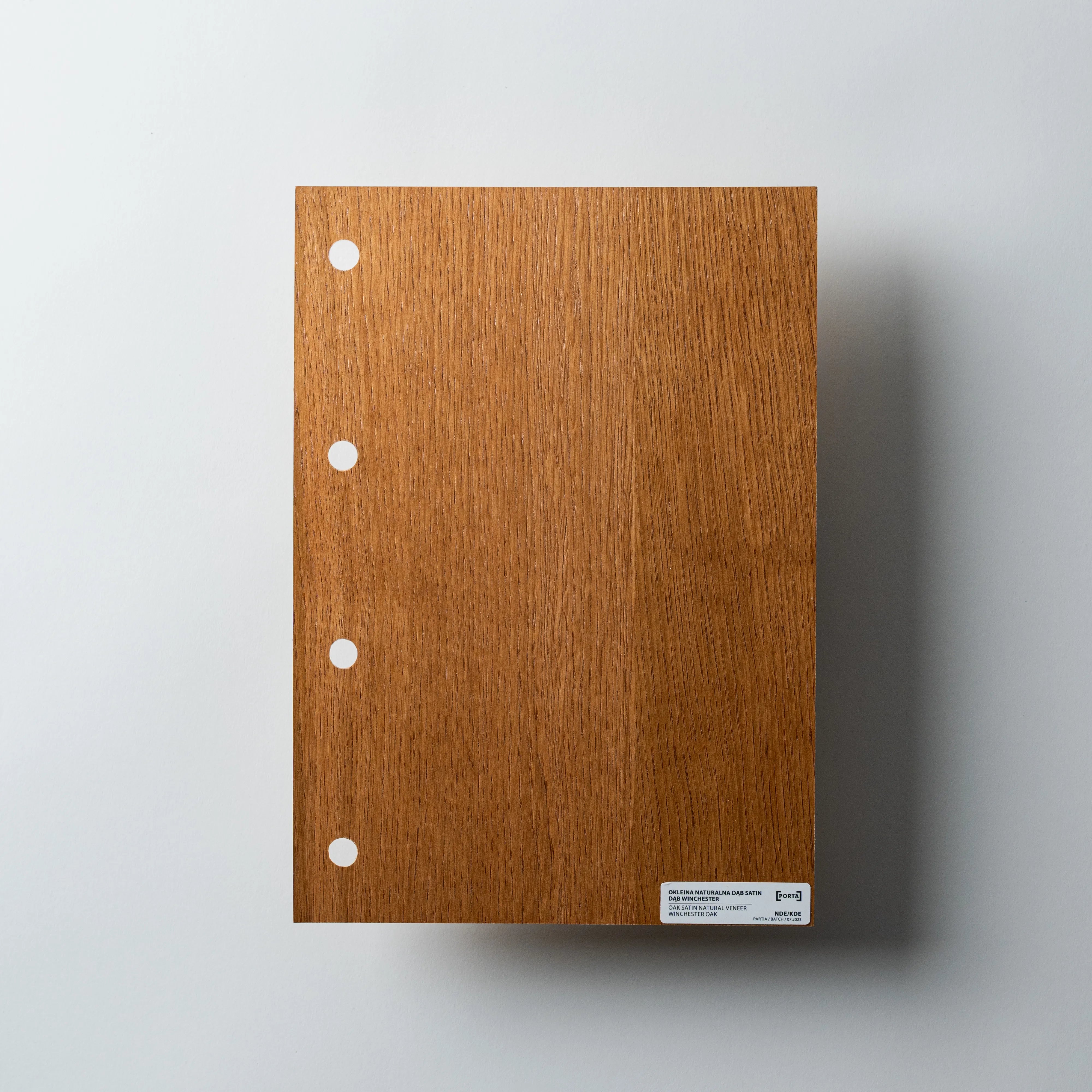 Próbka Okleina Naturalna Dąb Satin w kolorze: Dąb Winchester, w formacie A4.