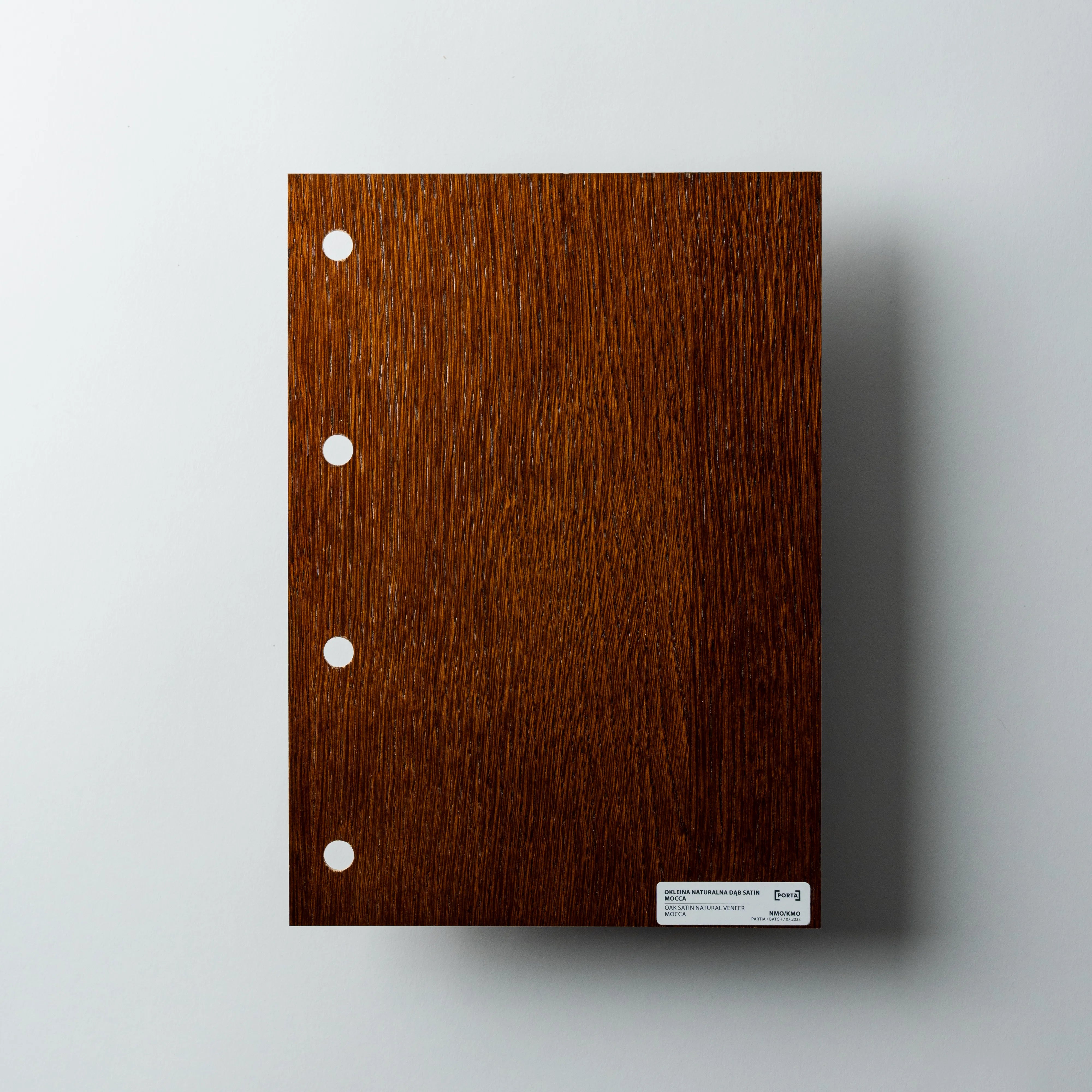 Próbka Okleina Naturalna Dąb Satin w kolorze: Mocca, w formacie A4.