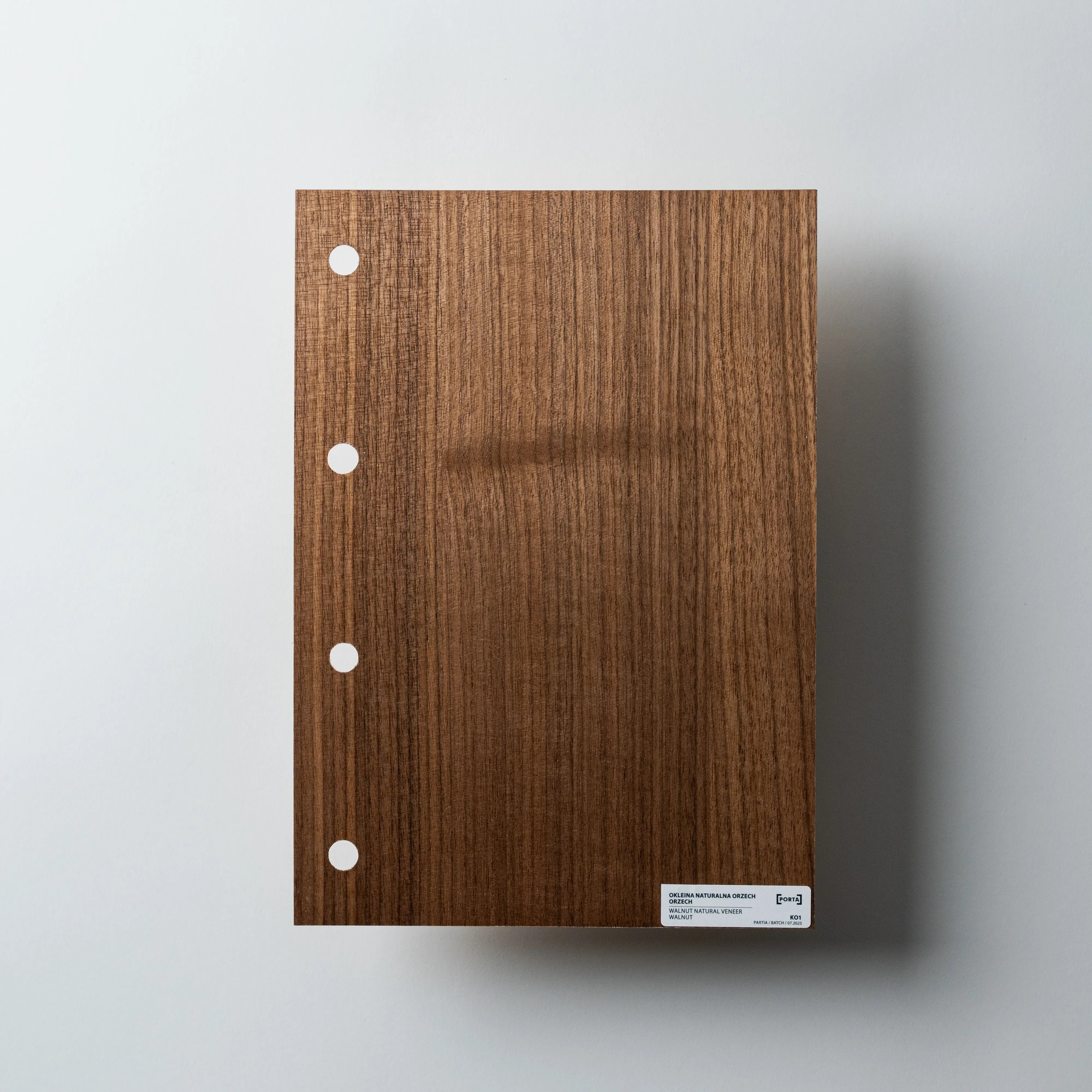 Próbka Okleiny Naturalnej Orzech, w formacie A4.