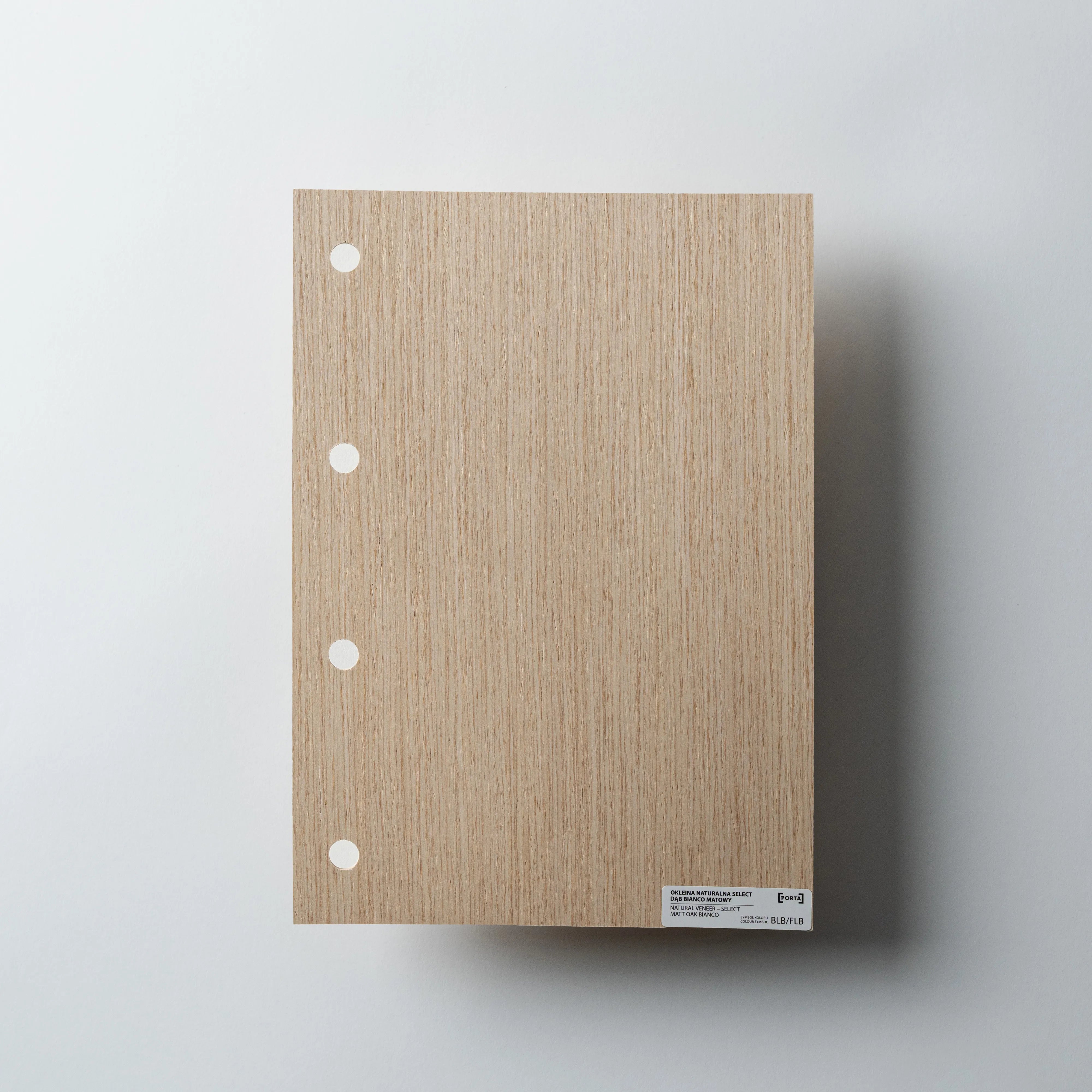 Próbka Okleiny Naturalnej Select w kolorze: Dąb Bianco Matowy, w formacie A4.